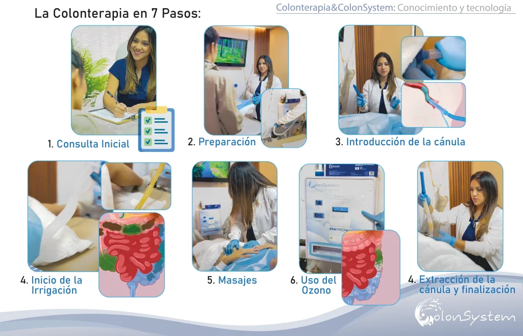 La terapia se realiza con el paciente recostado, generalmente en posición lateral izquierda o boca arriba, para facilitar el flujo del agua y permitir masajes abdominales suaves. El equipo ColonSystem utiliza agua purificada a temperatura corporal, que se introduce y descarga de manera controlada para favorecer la limpieza intestinal.